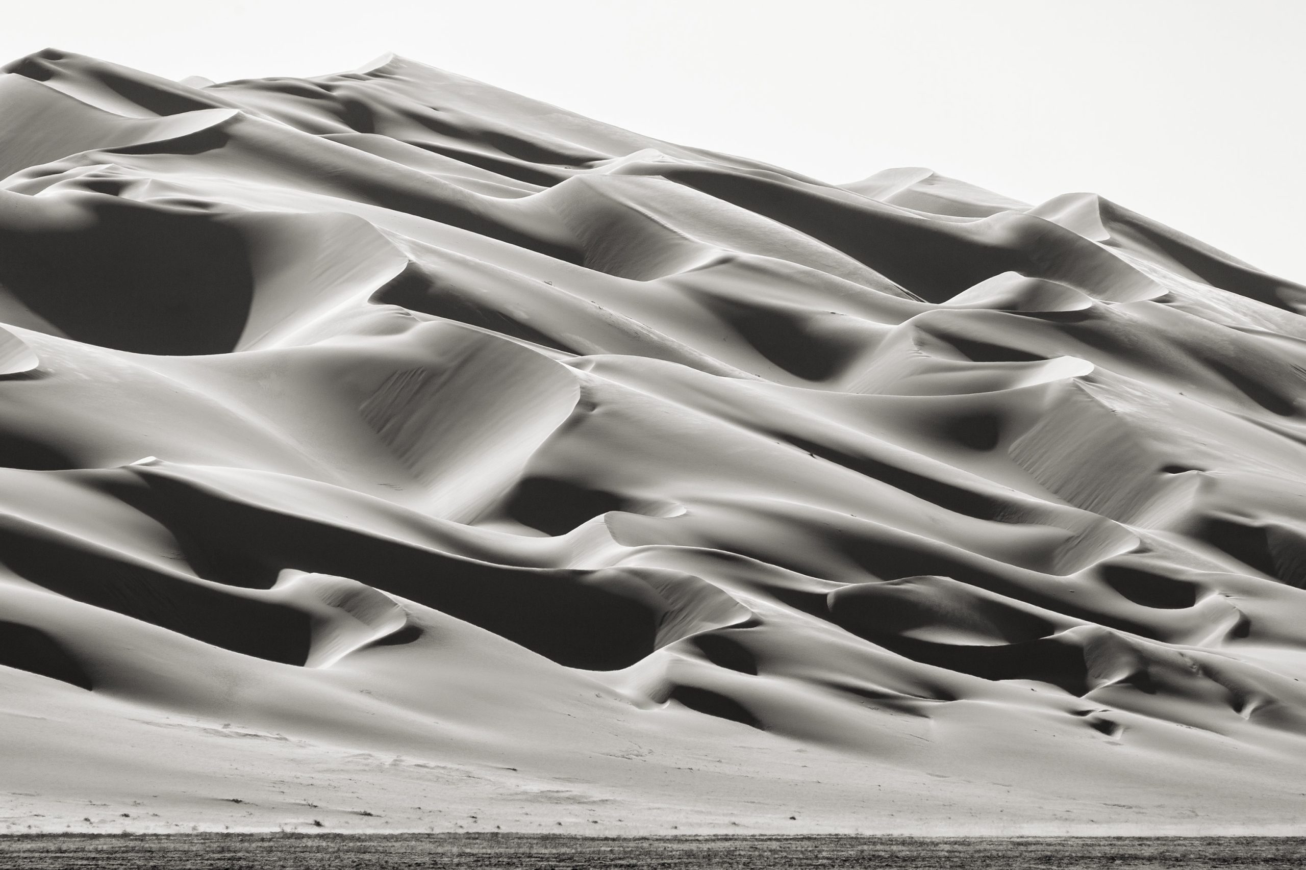 Defined by its monochrome aesthetic, ‘Rub Al Khali’ accentuates the intricate patterns, textures and contrasts sculpted by light and shadow across diverse terrains. Each fine art print transforms the familiar into the abstract, enticing you to see nature through a new contemplative lens.